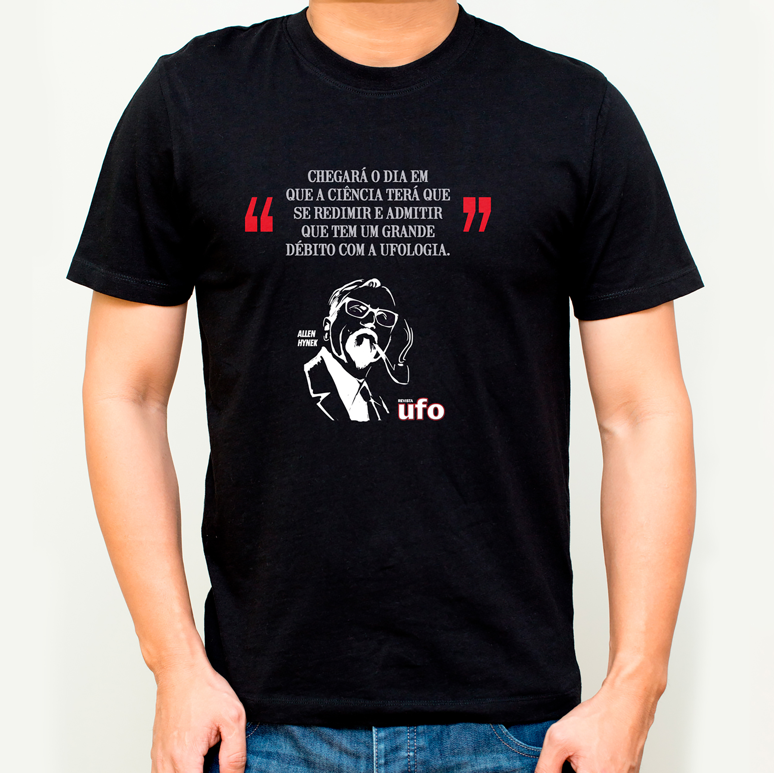 Esta camiseta estampa uma das mais célebres frases do astrônomo e consultor da Força Aérea Norte-Americana (USAF) para assuntos ufológicos, o doutor J. Allen Hynek, que afirmou: “Chegará o dia em que a ciência terá que se redimir e admitir que tem um grande débito com a Ufologia”.